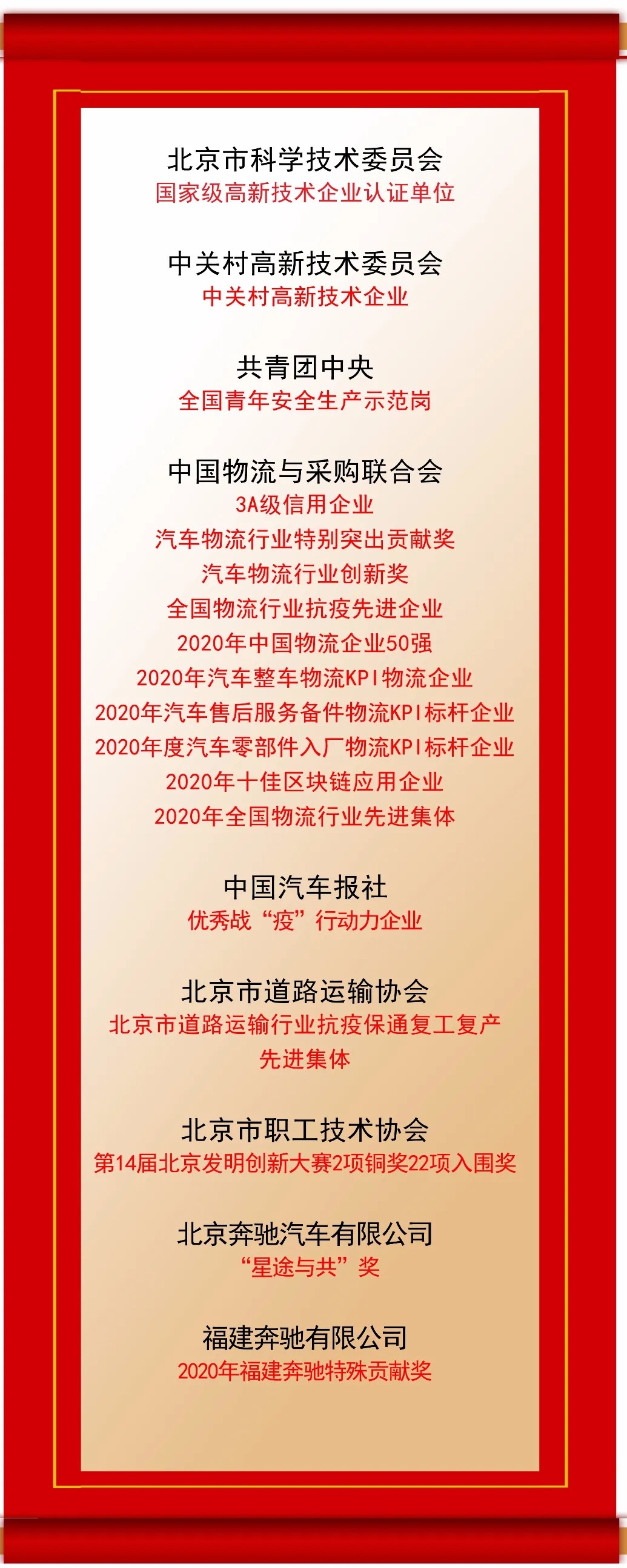 速度見證實力,進(jìn)取締造輝煌。作為專業(yè)的供應(yīng)鏈一體化物流服務(wù)商,中都物流多次以匠心品質(zhì)成功護(hù)航國家閱兵檢閱車運輸任務(wù),獲得中國物流行業(yè)最具投資價值企業(yè)、汽車物流行業(yè)創(chuàng)新獎、汽車物流行業(yè)十年特別突出貢獻(xiàn)企業(yè)、北京市年度“交通安全先進(jìn)單位、先進(jìn)集體”等榮譽。2020年更是獲得了中國汽車企業(yè)戰(zhàn)“疫”行動力企業(yè)稱號,中都人正以自己的智慧與汗水,致力于成為科技驅(qū)動型智慧物流企業(yè),為客戶提供專業(yè)服務(wù)方案,為員工創(chuàng)造美好生活,為行業(yè)科學(xué)有序發(fā)展貢獻(xiàn)力量。