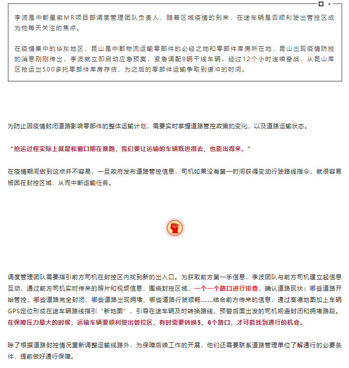 【保產(chǎn)保供“接力賽”】運(yùn)輸路上的“導(dǎo)航員”——零部件物流第二棒“干線運(yùn)輸”