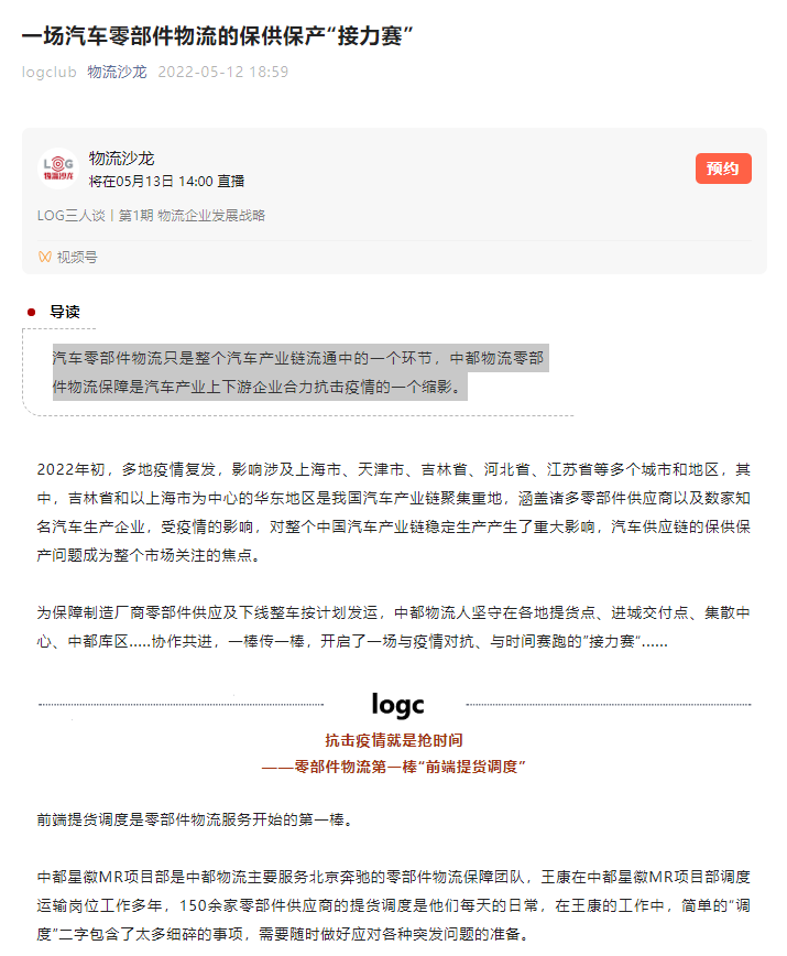 物流沙龍——一場汽車零部件物流的保供保產(chǎn)“接力賽”