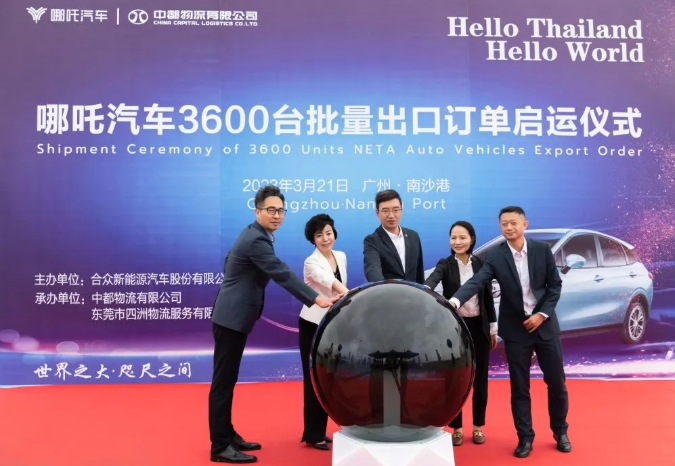 3月21日,長(zhǎng)風(fēng)浩蕩,汽笛轟鳴,由中都物流承運(yùn)的3600臺(tái)哪吒出口車(chē)輛正統(tǒng)一集港廣州南沙港,準(zhǔn)備踏上發(fā)往泰國(guó)林查班的旅途。這是哪吒汽車(chē)拓展國(guó)際市場(chǎng)最大單批次出口,也是中國(guó)造車(chē)新勢(shì)力中最大單批次出口,更是中都物流國(guó)際物流品牌-中都澳通在東南亞線路單批次項(xiàng)目發(fā)運(yùn)量的再一次突破。作為哪吒汽車(chē)出口業(yè)務(wù)的主要合作伙伴,中都物流在廣州港碼頭舉辦了隆重的“哪吒汽車(chē)首批出口泰國(guó)啟運(yùn)儀式”。哪吒汽車(chē)副總裁、營(yíng)銷(xiāo)公司總裁江峰,中都物流黨委書(shū)記、總經(jīng)理張雪梅等項(xiàng)目相關(guān)方領(lǐng)導(dǎo)出席儀式。