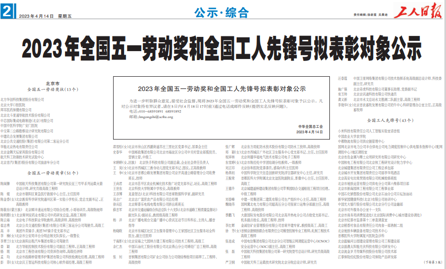 中都物流入圍“全國工人先鋒號”榮譽榜